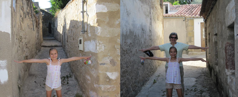 We went up the extremely narrow cobblestone streets to get as close as we could to the castle. We ended up parking the car near what’s called the pool house – referring to Roman baths “La Casa de la Alberca” and decided to walk up from there…