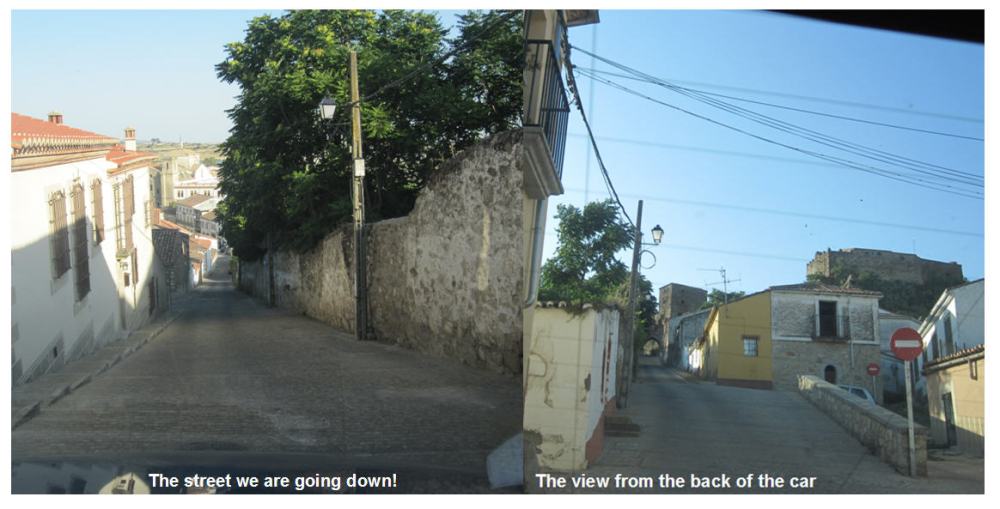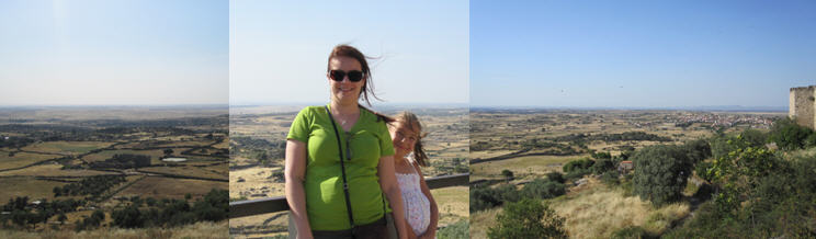 We were now almost getting close to the castle, which is exciting to Carolina. We walk over to a spot where you can see a great view of the land around Trujillo. See collage below to try to give a panoramic view as we were seeing it.