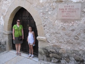Carolina thought it was funny and interesting that all the doors were so small and wondered if people were just really tiny back in the 15th century. A little further up the street you come to a plaza where you can see a bronze statue in commemoration of Orellana. Maybe statue isn’t quite the word to describe it, as it really is only his head!