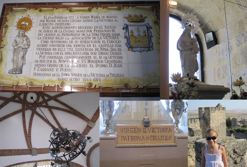 The Virgen de la Victoria looks after the Trujillanos as the story says: In the 1232 the Virgin Mary appeared in the town of Trujillo providing the strength to lead the Christians to victory over the Moors in that time. This is why she is called “La Virgen de la Victoria” – the Virgin of Victory. She is the Patron of the town of Trujillo which is why they built her chapel in the highest point so she can always look after the Trujillanos. In her honor they also have her in the emblem of Trujillo.