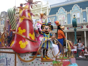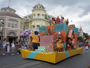 3. On Main Street during their “Move it! Shake it! Celebrate it! Street Party” while you are dancing to the music, look closely at the Parade cars where your favorite characters are riding on, there are several Mickey silhouettes around each car.