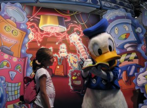 3.Same place when you meet with Donald Duck, all the machines in the background look like faces, but one of them is a Mickey Silhouette. In my pic you can see it right next to Donald’s arm.