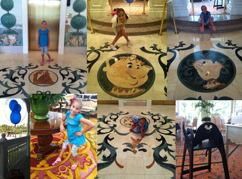 We stayed at the Grand Floridian Resort and Spa, so as a game I told my daughter we had to find all the hidden characters around the decor in the hotel, and we took a picture of all the ones we encountered!