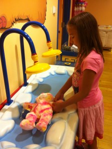 Followed by Build-a-bear, where they didn’t have any Smurfette’s left anymore (very bummed) and we had to find something else to create, which is how we came up with Sherbert!