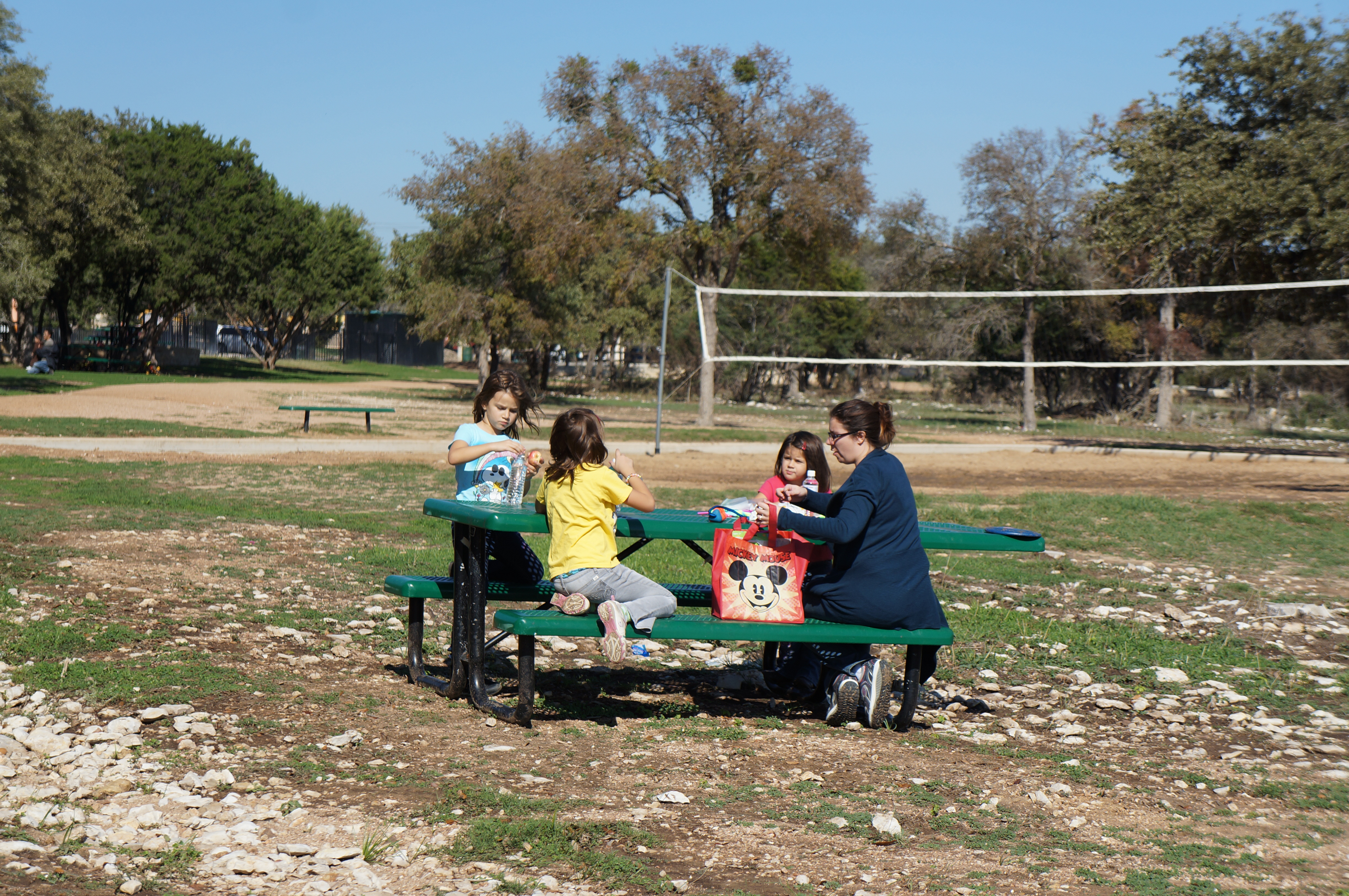 The day started warming up so we gathered snacks to have a picnic at the park. Mocha had a great time while girls chased him around, then we ate our snacks and then spent time at the playground. 2hrs of fun at Brushy creek park and it was time to start the cooking!