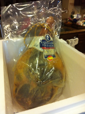 Needless to say I put it on the Jamon holder, sliced some up and we ate it with bread and tomato “Pan con tomate” and that was heavenly dinner for me 🙂 I almost want to go back into the kitchen and sneak another slice!