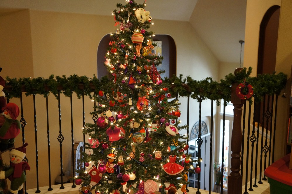 I call this one the fun tree because it has colored lights, lots of tinsel and is the kids favorite because it has a lot of things on it.