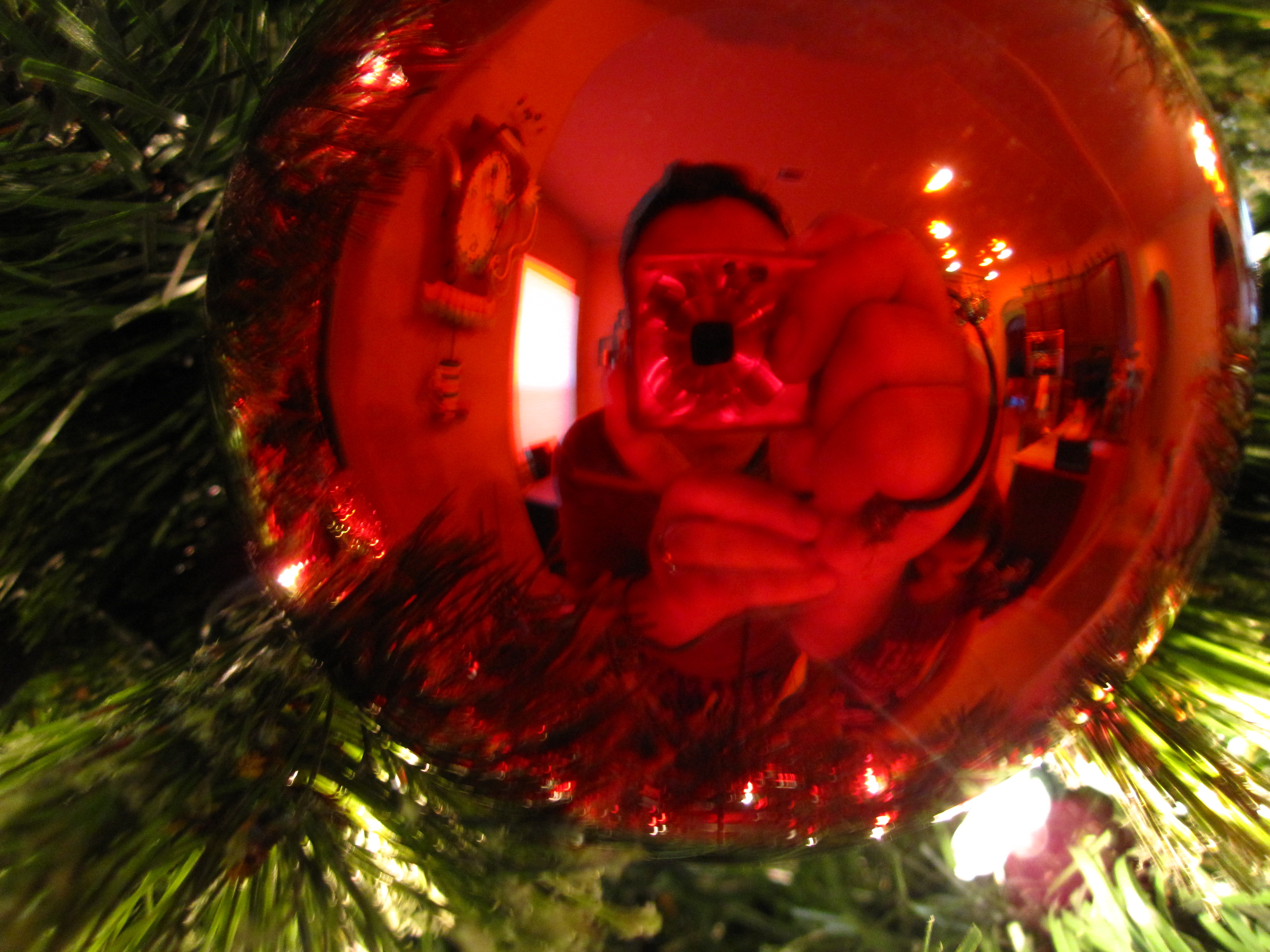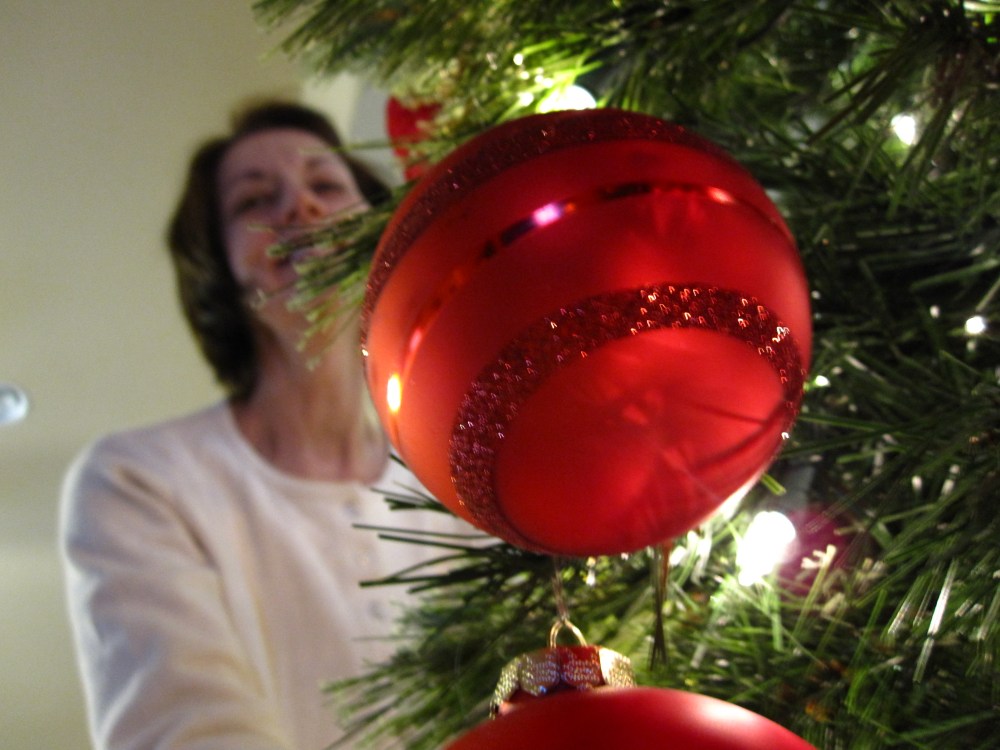 The tree in the livingroom gets decorated the day of Thanksgiving and is only decorated with red and gold