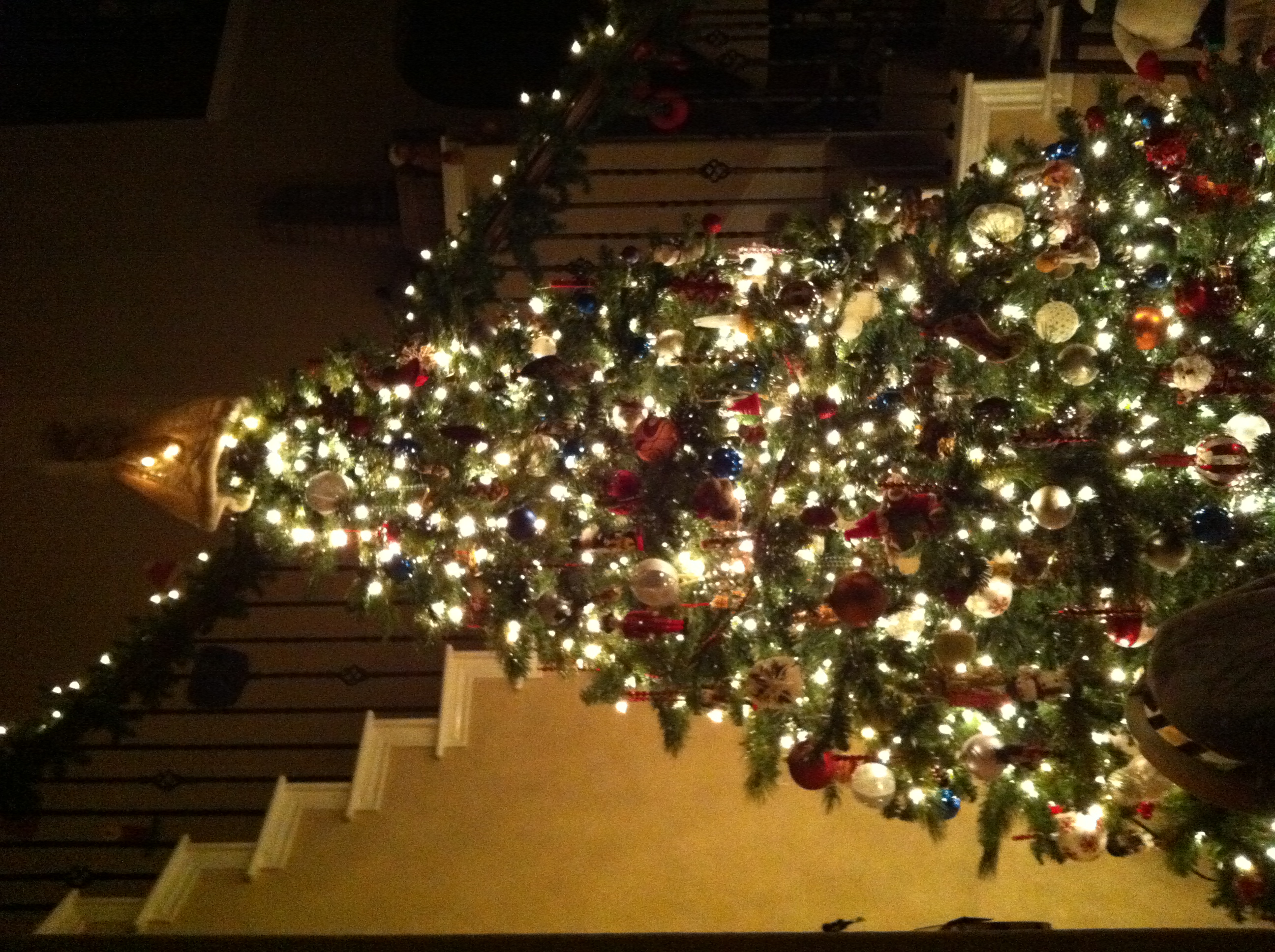 And then the grand finale is our big tree in the foyer, this is my favorite of them all, not only because it’s HUGE, but because it has special ornaments from around the world, some from my travels, some as gifts from others travels and special ornaments we’ve found over the years. I at least add 1 ornament a year to it, so you can imagine how full it gets!