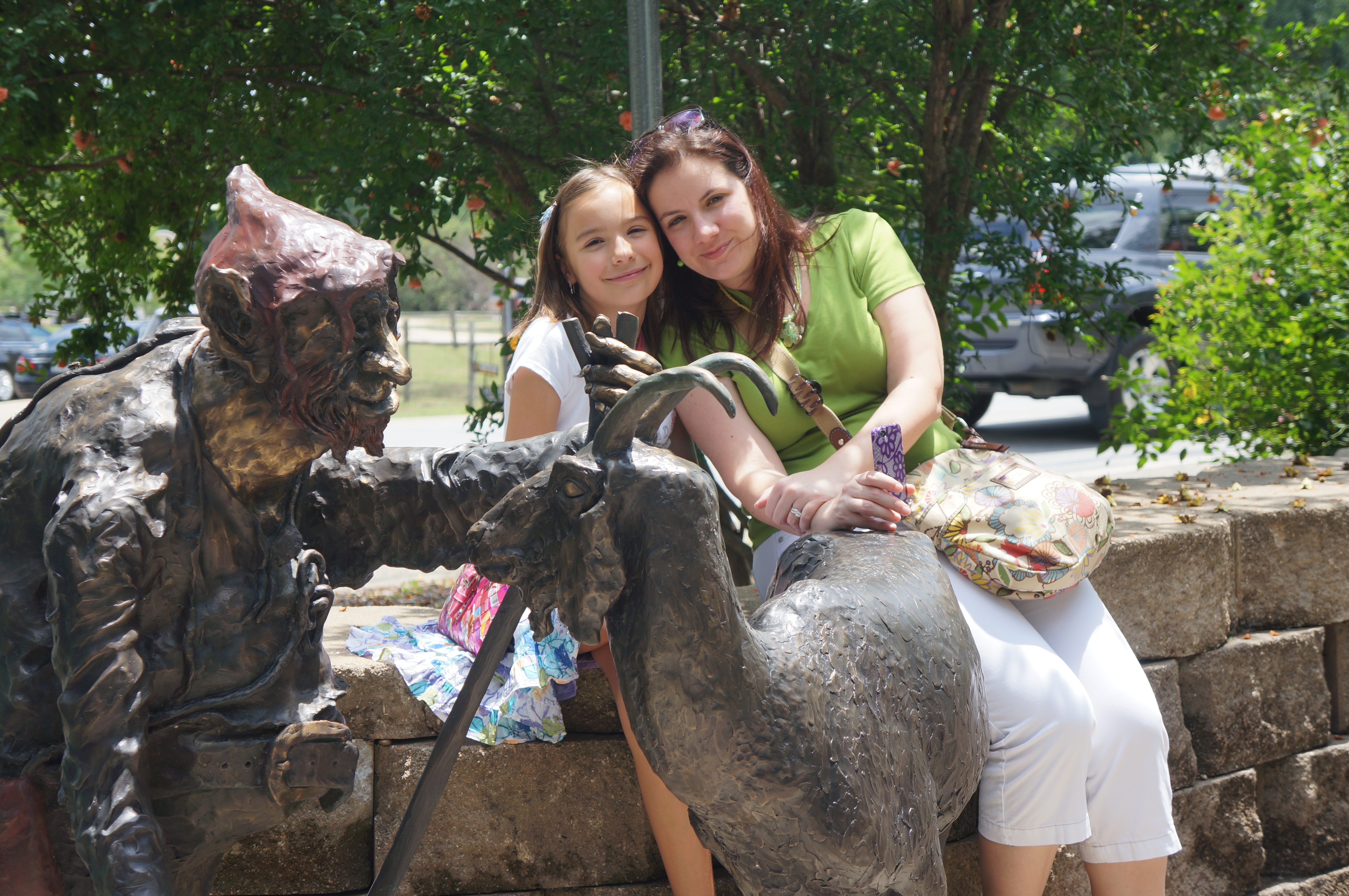 We walked towards the bridge and found a funny looking sculpture of Billy Goat Gruff before we walked under a beautiful canopy of trees over a bridge.