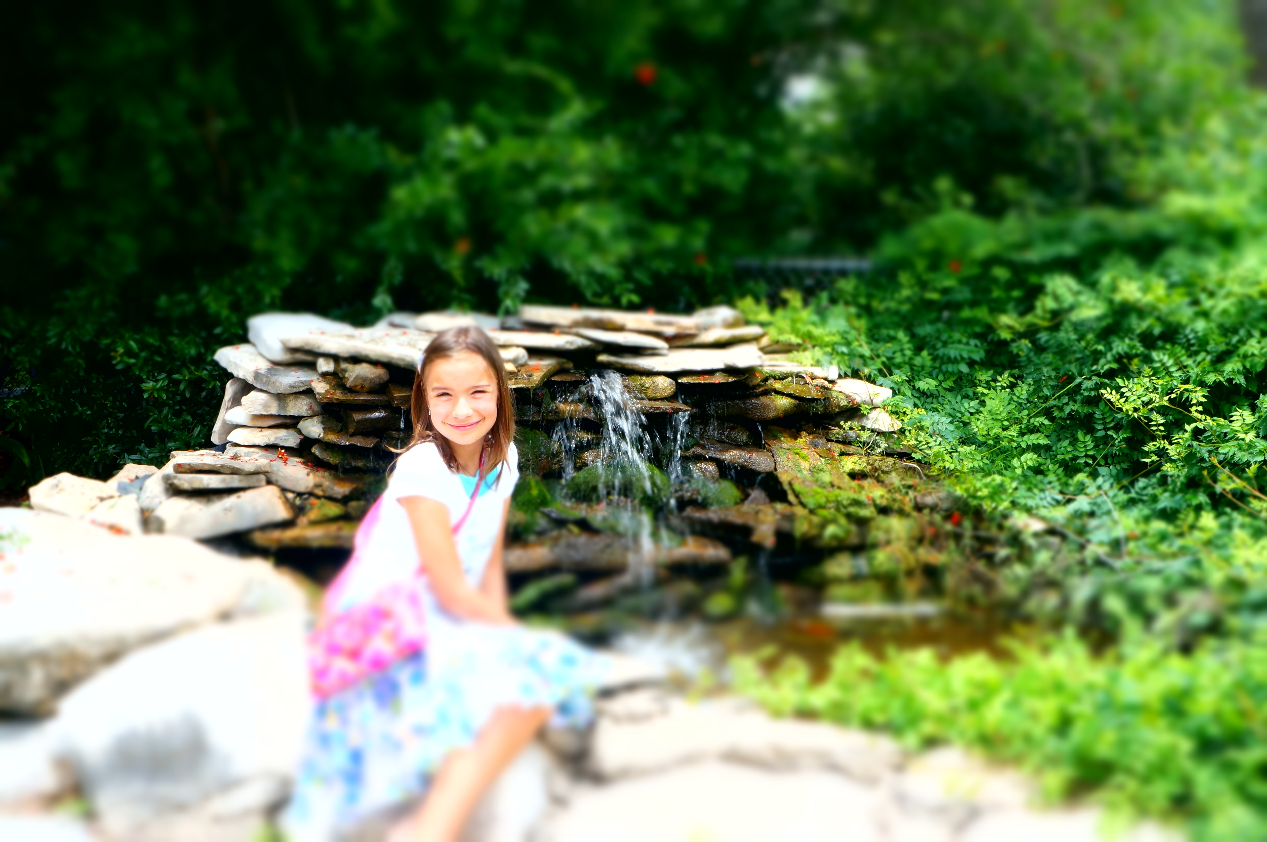 Looking at tadpoles in the little creek near the winery