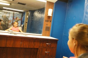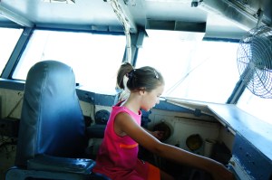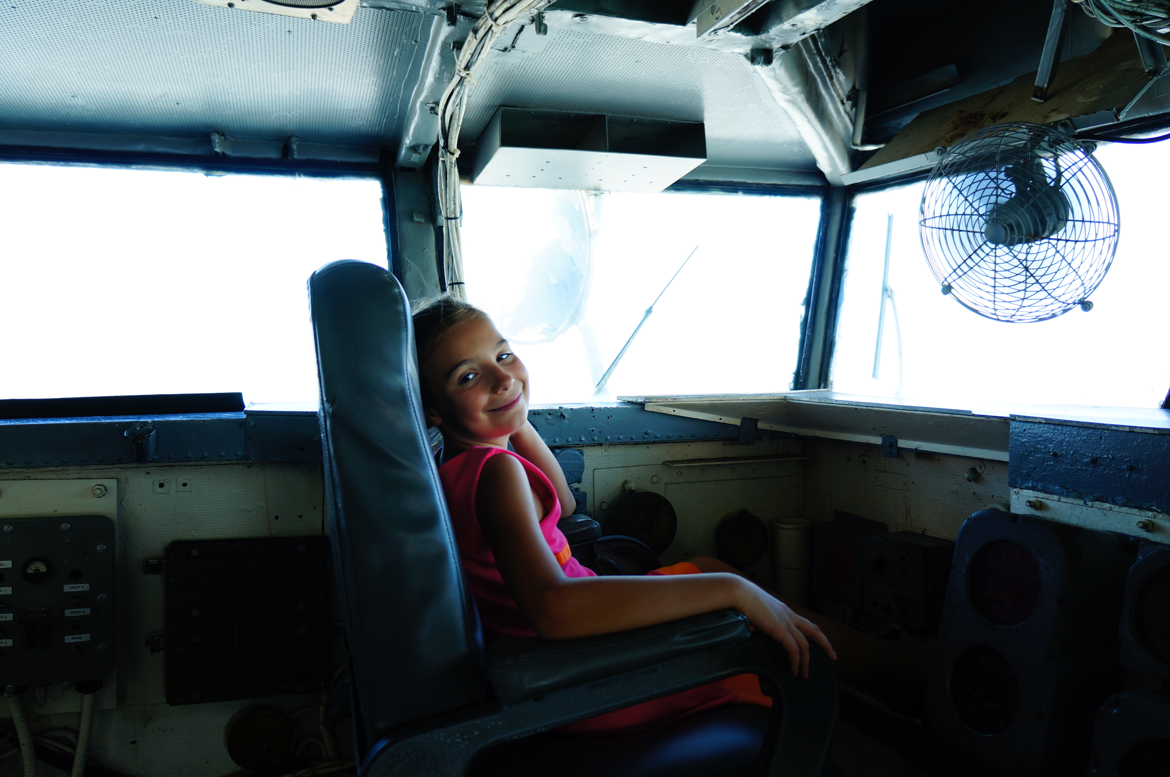 As I climb up the stairs I think of how I have to come back down, and to me it’s eerie and a bit claustrophobic. Carolina thinks it’s cool to sit in the Captain’s chair and look at all the buttons, imagine having to steer this monster? How does it even float? I don’t know how to explain it because I was thinking the same thing!