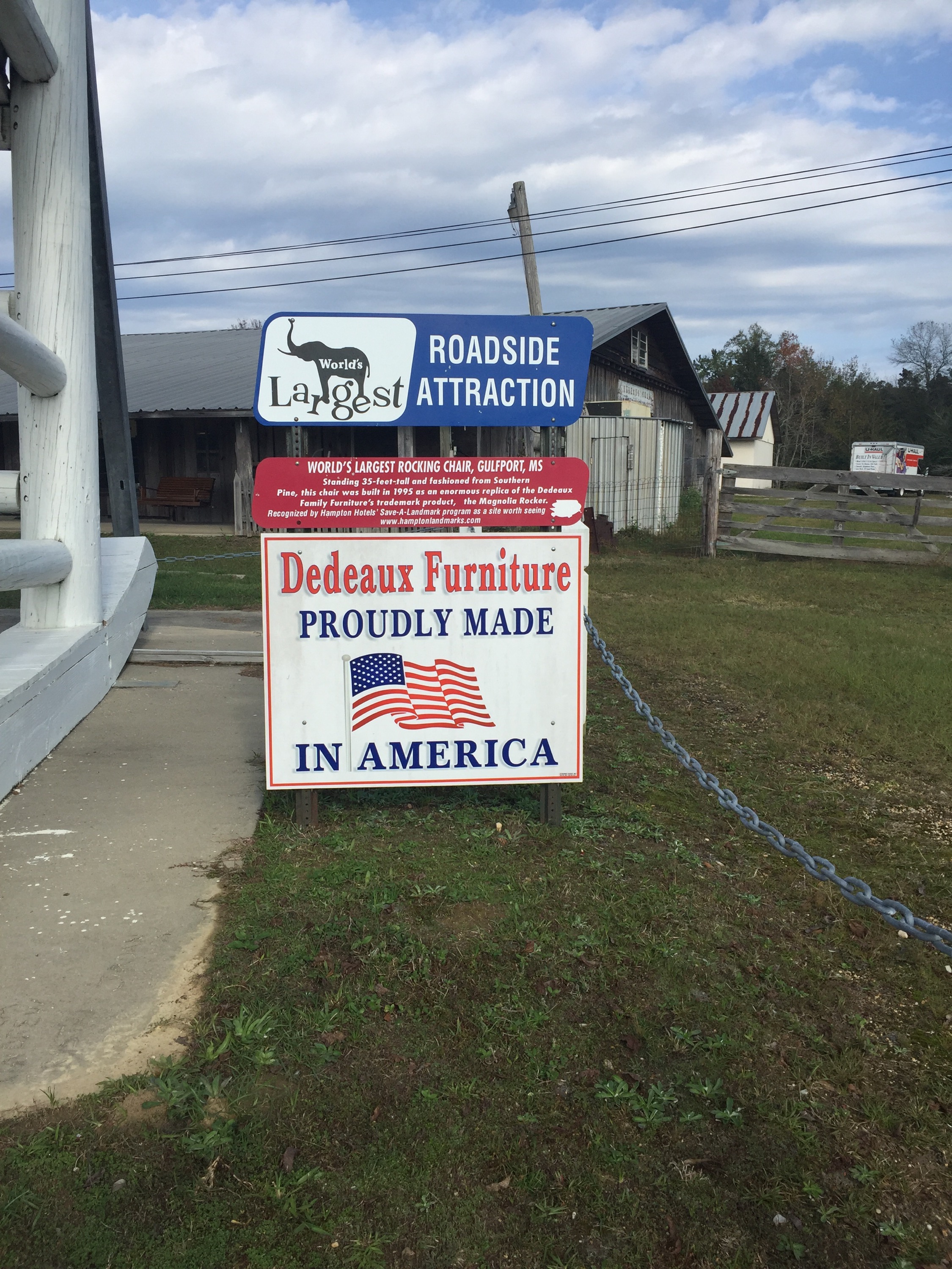 The largest Rocking Chair built by Dedeaux Furniture store in 1995 is pretty cool, will make you feel tiny for sure!